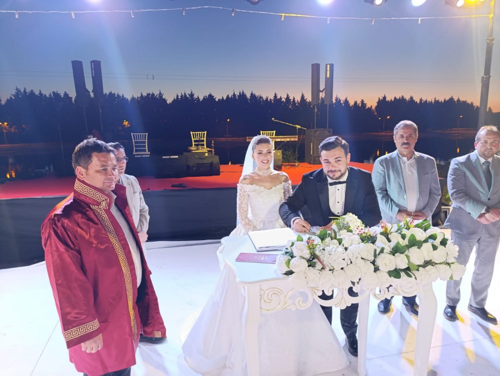 Hazar ve Zeynep Karayılan çiftinin nikahını bizzat Osmangazi Belediye Başkanı Erkan Aydın kıydı. Başkan Aydın'ın samimi ve içten nikah konuşması, davetlilerden büyük beğeni topladı. Genç çiftin mutluluğa "evet" dediği bu özel anda, nikah şahitleri de oldukça dikkat çekici isimlerden oluştu. Şahitler kürsüsünde Devlet Eski Bakanı Faruk Çelik, AK Parti Bursa Milletvekili Refik Özen, Yıldırım Belediye Başkanı Oktay Yılmaz gibi siyasetin duayen isimlerinin yanı sıra, Bursaspor Başkanı Enes Çelik gibi spor dünyasının önemli bir figürü de yer aldı. Bu tablo, Bursaspor'un kent siyasetiyle iç içe geçmiş yapısını bir kez daha ortaya koydu. Şahitlerin böylesine güçlü bir profil çizmesi, genç çifte verilen değeri ve geleceğe yönelik iyi dilekleri simgeledi.