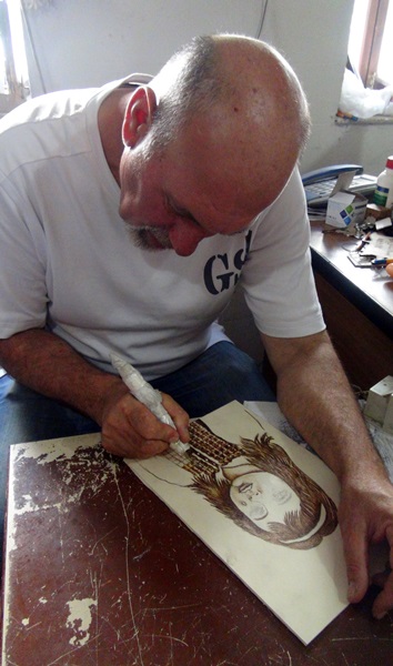 Yakma sanatını 40 yıl önce mobilya üzerinde öğrendiğini ve bunu farklı alanlarda kullanmak üzere harekete geçtiğini anlatan Naim Gülbol, Antakya Arkeoloji Müzesi'ndeki mozaik eserler, dünya genelindeki tarihi eserler ve mozaikler ile çizgi film kahramanlarını resmettiklerini söyledi.