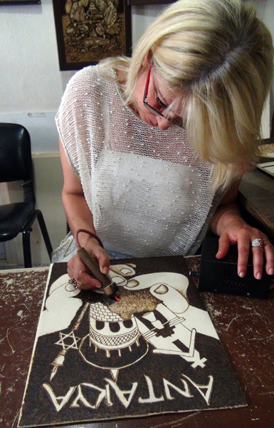 Restore edilen eski Antakya evinde kurdukları atölyelerinde bir çok eseri ahşap yakma tekniği ile yeniden canlandıran Gülbol Çifti, bir yandan da bu sanat dalını özellikle kadın kursiyerlere öğretmeye çalışıyor.